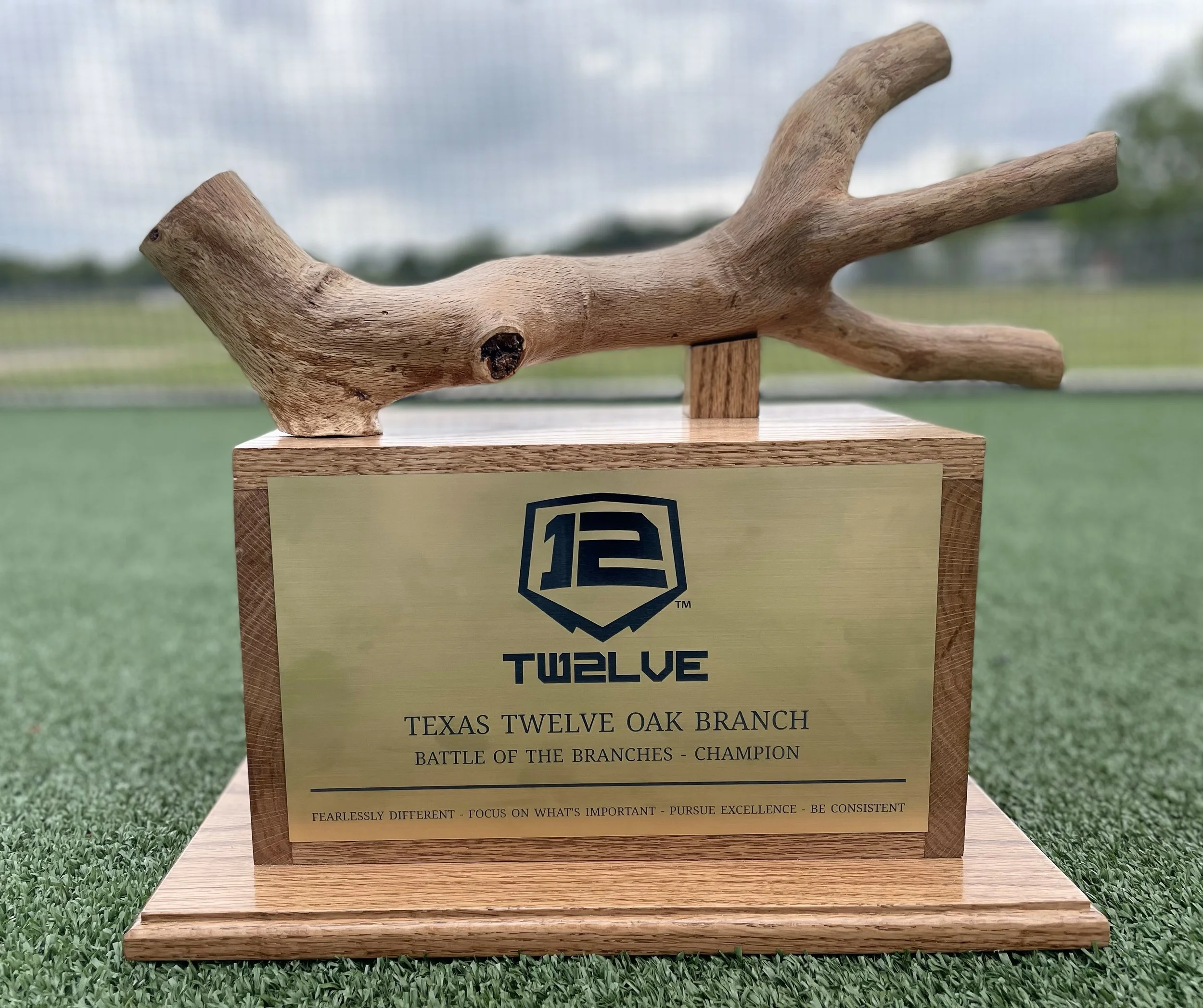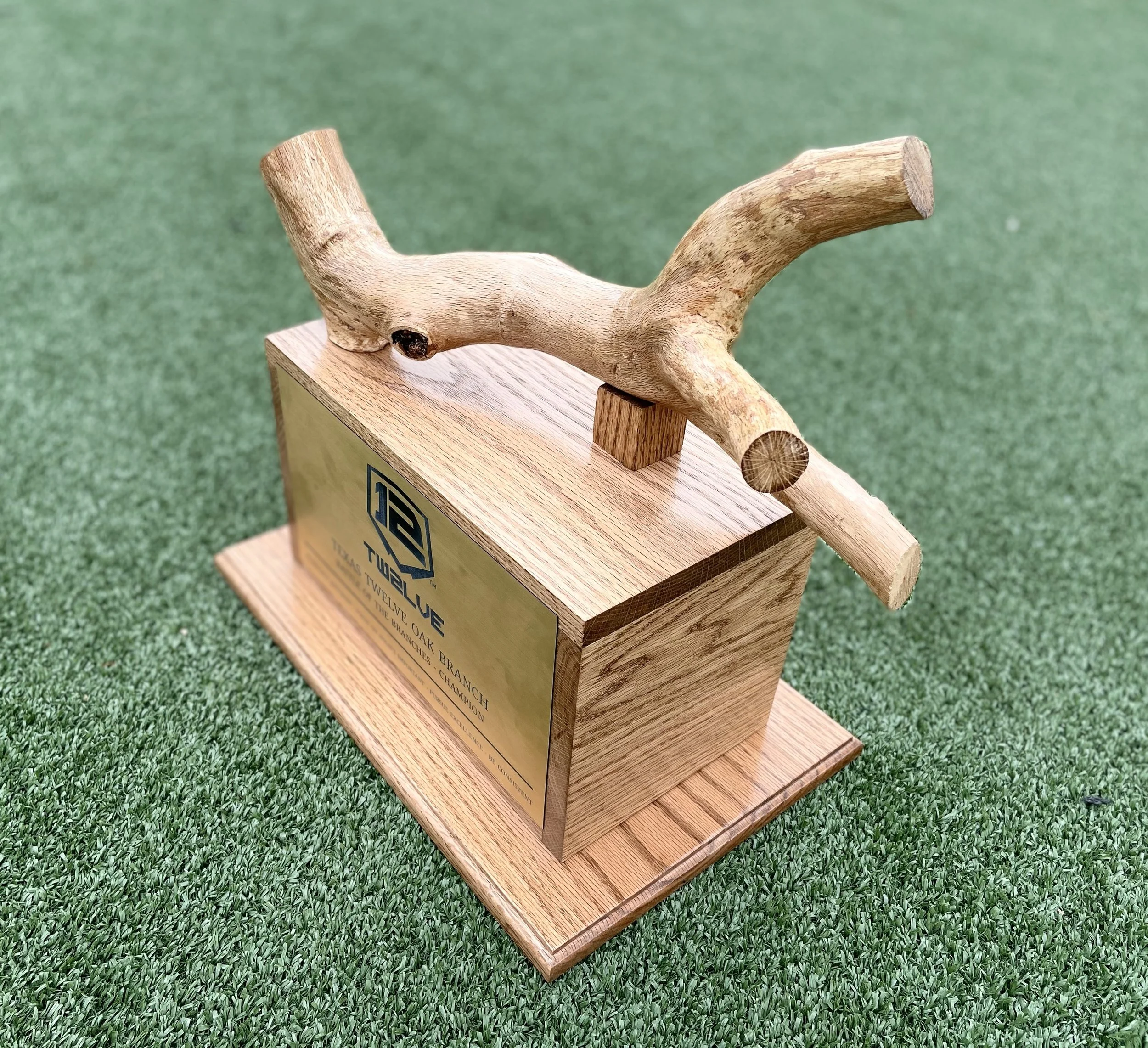 The Texas Twelve Oak Branch Trophy features a single branch of an Oak tree. The Oak species is praised for its resilience and ability to withstand the most adverse conditions and has therefore become known as a symbol of strength, stability, and endurance. Twelve training methods, player development systems, and culture are all designed to produce players who are able to walk through life and withstand all storms in the same manner as the mighty Oak tree.